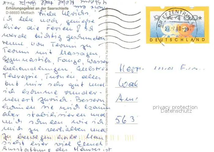 Mettlach Fliegeraufnahme mit Dreisbach Saarschleife und Reha Klinik Mettlach postalisch gelaufen 2000 Erhaltung siehe scans [WerneD78] WernPID7