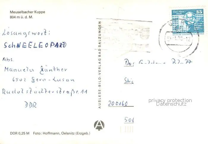 Meuselbach-Schwarzmuehle Meuselbacher Kuppe Aussichtsturm Meuselbach-Schwarzmuehle postalisch gelaufen 1986 Erhaltung siehe scans [FriedD77] Frierer