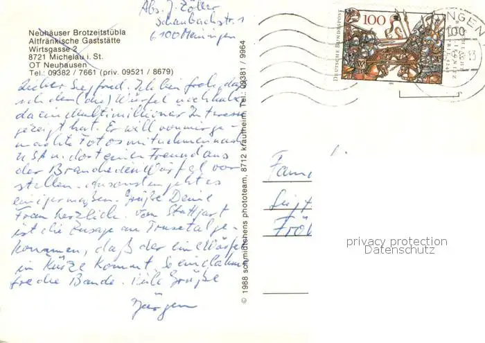 Michelau_Steigerwald Neuhaeuser Brotzeitstuebla Gastraeume Michelau_Steigerwald postalisch gelaufen nach 1965 Erhaltung siehe scans [WerneD78] WernPID7