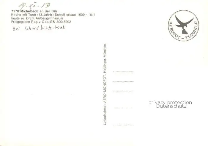 Michelbach Bilz Kategorie Alte Ansichtskarten Postkarten bx49110 Michelbach_Bilz Fliegeraufnahme Michelbach Bilz postalisch nicht gelaufen 1983 Erhaltung siehe scans [FriedD77]