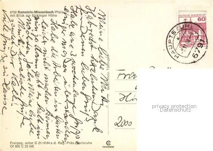 Miesenbach_Ramstein-Miesenbach mit Blick zur Sickinger Hoehe Fliegeraufnahme Miesenbach postalisch gelaufen 1988 Erhaltung siehe scans [FriedD77] Frierer
