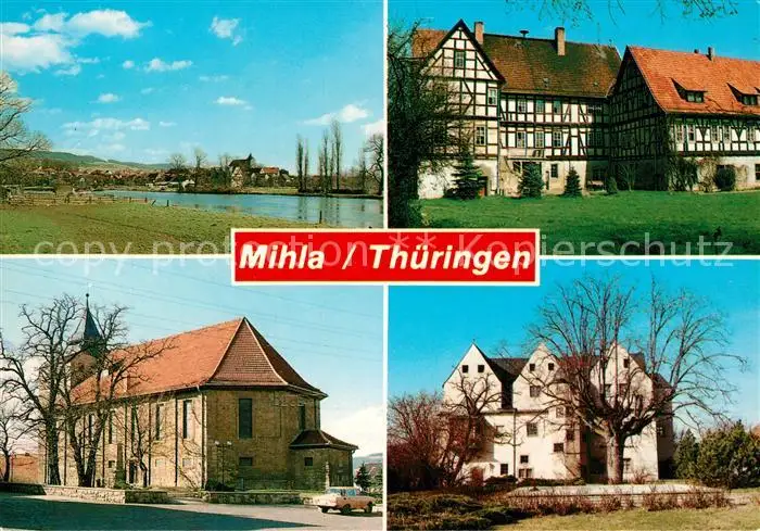 Mihla Partie an der Werra Kirche Rotes Schloss Graues Schloss Mihla postalisch nicht gelaufen nach 1965 Erhaltung siehe scans [FriedD77] Frierer