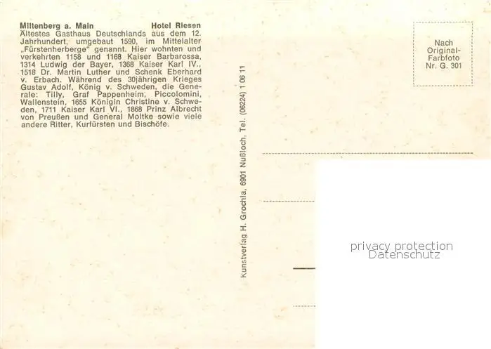 Miltenberg_Main Hotel Riesen Miltenberg Main postalisch nicht gelaufen nach 1965 Erhaltung siehe scans [WerneD78] WernPID7