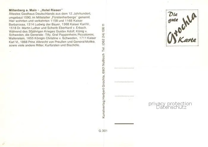 Miltenberg_Main Hotel Riesen aeltestes Gasthaus Deutschlands 12. Jhdt. Fachwerkhaus Miltenberg Main postalisch nicht gelaufen nach 1965 Erhaltung siehe scans [FriedD77] Frierer