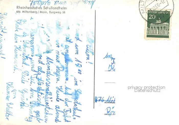 Miltenberg_Main Rheinhessisches Schullandheim Miltenberg Main postalisch gelaufen 1966 Erhaltung siehe scans [FriedD77] Frierer
