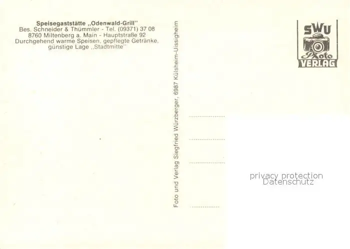 Miltenberg_Main Speisegaststaette Odenwald Grill Miltenberg Miltenberg Main postalisch nicht gelaufen nach 1965 Erhaltung siehe scans [LiesaD40] LiesID40
