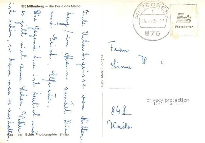 Miltenberg_Main Uferpromenade Miltenberg Main postalisch gelaufen 1965 Erhaltung siehe scans [FriedD77] Frierer