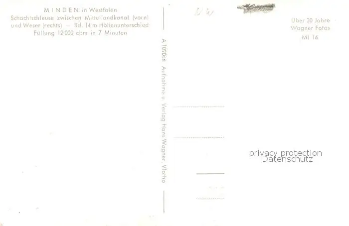 Minden__Westfalen_Weser Schachtschleuse zwischen Mittellandkanal und Weser postalisch nicht gelaufen nach 1965 Erhaltung siehe scans [FriedD77] Frierer