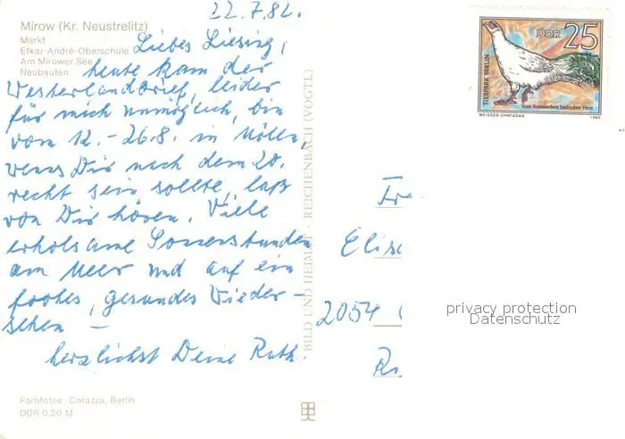 Mirow Markt Etkar André Oberschule Mirower See Neubauten Wohnsiedlung Mirow postalisch gelaufen 1982 Erhaltung siehe scans [FriedD77] Frierer