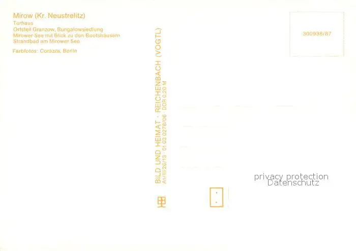 Mirow Torhaus OT Granzow Bungalowsiedlung Mirower See Bootshaeuser Strandbad Mirow postalisch nicht gelaufen 1987 Erhaltung siehe scans [FriedD77] Frierer