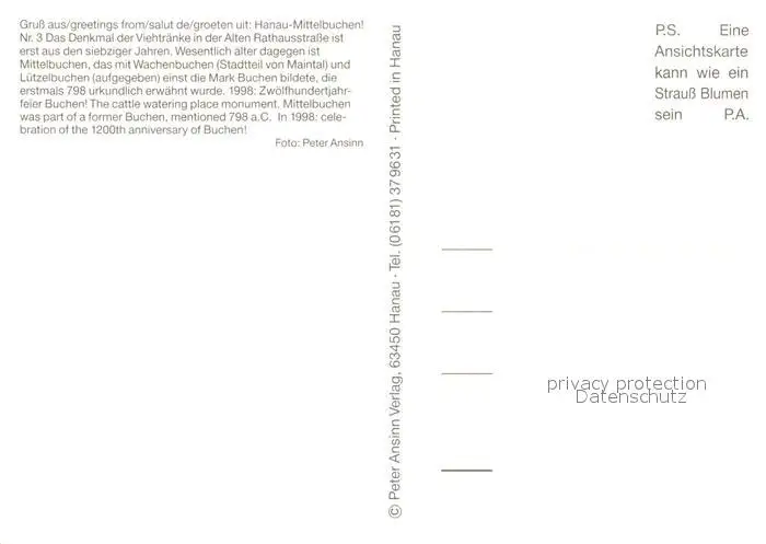 Mittelbuchen AlteRathausstrasse Viehtraenke Mittelbuchen postalisch nicht gelaufen nach 1965 Erhaltung siehe scans [WerneD78] WernPID7
