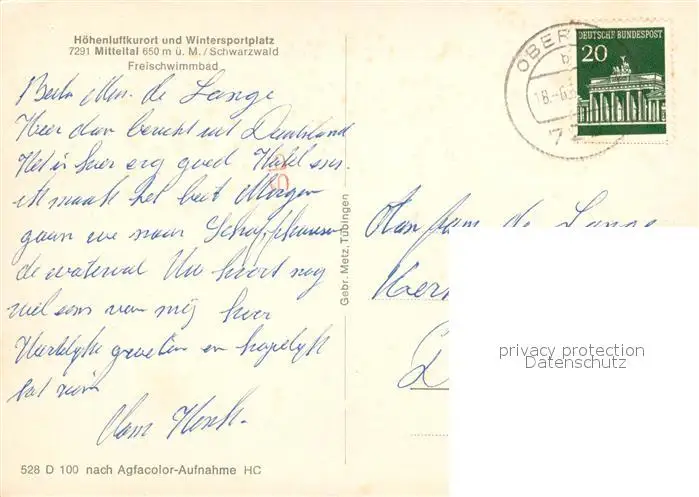 Mitteltal Schwarzwald Kategorie Alte Ansichtskarten Postkarten bx59362 Mitteltal_Schwarzwald Freischwimmbad Mitteltal Schwarzwald postalisch gelaufen nach 1965 Erhaltung siehe scans [WerneD78]