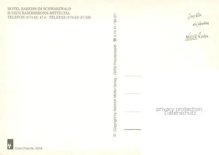 Mitteltal_Schwarzwald Hotel Bareiss Mitteltal Schwarzwald postalisch nicht gelaufen nach 1965 Erhaltung siehe scans [WerneD78] WernPID7