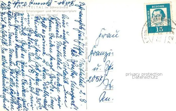 Mitteltal_Schwarzwald Landschaftspanorama oberes Murgtal Mitteltal Schwarzwald postalisch gelaufen 1963 Erhaltung siehe scans [FriedD77] Frierer