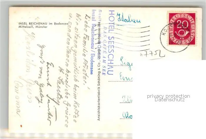 Mittelzell Blick zum Muenster Mittelzell postalisch gelaufen 1952 Erhaltung siehe scans [FriedD77] Frierer