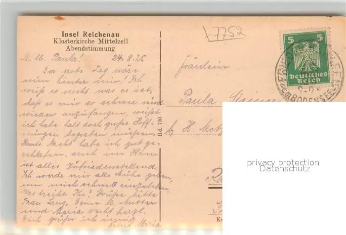 Mittelzell Klosterkirche Segelboot Abendstimmung Mittelzell postalisch gelaufen 1925 Erhaltung siehe scans [FriedD77] Frierer