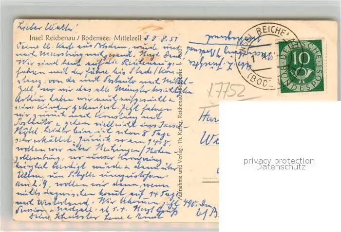 Mittelzell Panorama Ortsansicht mit Kirche Gedicht Mittelzell postalisch gelaufen 1951 Erhaltung siehe scans [FriedD77] Frierer