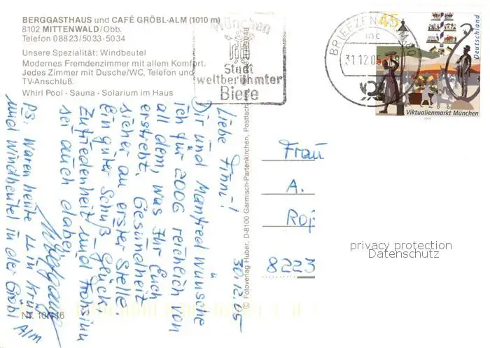 Mittenwald_Bayern Berggasthaus und Cafe Groebl Alm Mittenwald Bayern postalisch gelaufen 2006 Erhaltung siehe scans [WerneD78] WernPID7