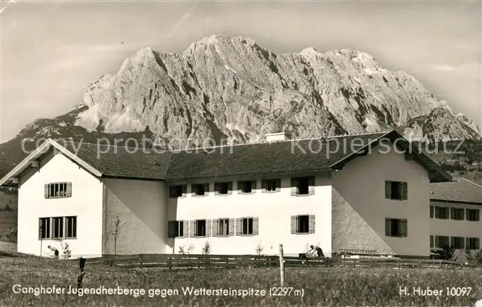AK / Ansichtskarte Mittenwald_Bayern Ganghofer Jugendherberge gegen Wettersteinspitze Wettersteingebirge Mittenwald Bayern
