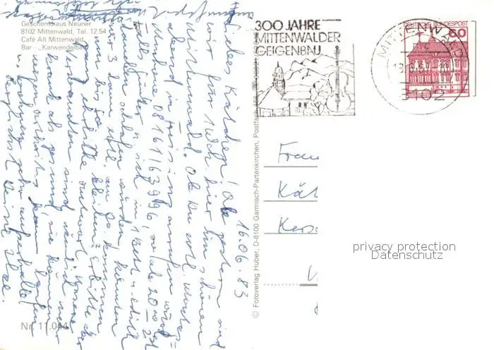Mittenwald_Bayern Geschenkhaus Neuner Cafe Alt Mittenwald Bar Mittenwald Bayern postalisch gelaufen 1987 Erhaltung siehe scans [WerneD78] WernPID7