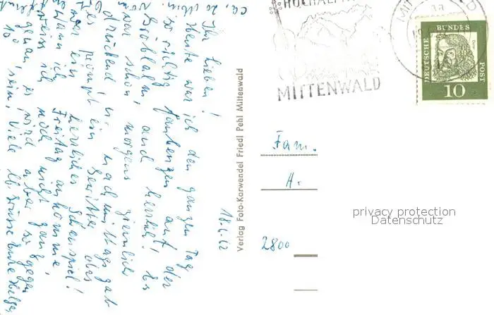 Mittenwald_Bayern Groeblalm mit Wetterstein Mittenwald Bayern postalisch gelaufen 1962 Erhaltung siehe scans [FriedD77] Frierer
