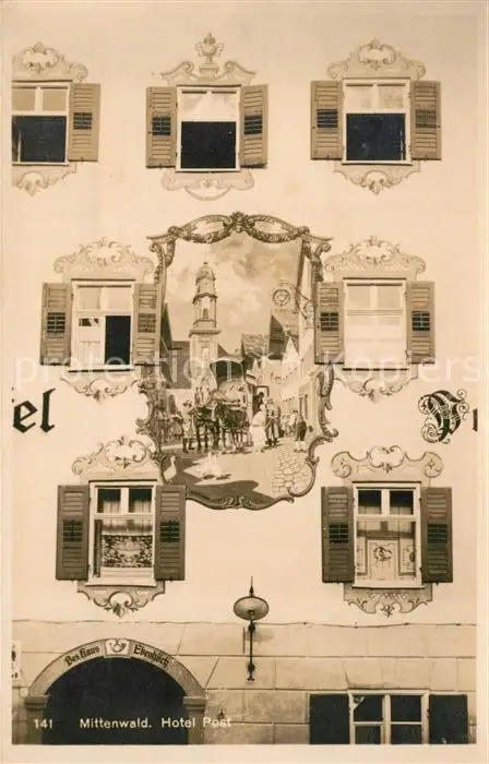 Mittenwald_Bayern Hotel Post Mittenwald Bayern postalisch nicht gelaufen 1921-1965 Erhaltung siehe scans [WerneD78] WernPID7