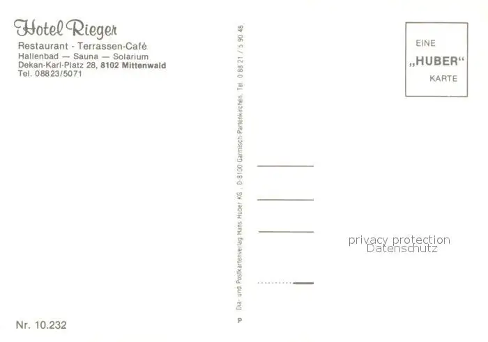 Mittenwald_Bayern Hotel Rieger Terrassen Cafe Mittenwald Bayern postalisch nicht gelaufen nach 1965 Erhaltung siehe scans [WerneD78] WernPID7