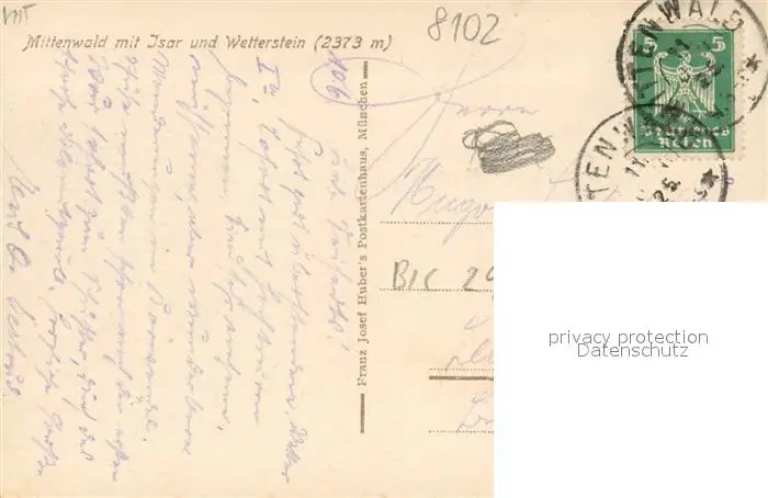 Mittenwald_Bayern Isar Wetterstein Panorama Mittenwald Bayern postalisch gelaufen 1921-1965 Erhaltung siehe scans [KathaD81] Kathoren
