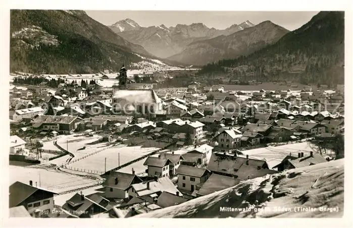 Mittenwald_Bayern Kirche Winterpanorama Mittenwald Bayern postalisch nicht gelaufen 1921-1965 Erhaltung siehe scans [KathaD81] Kathoren