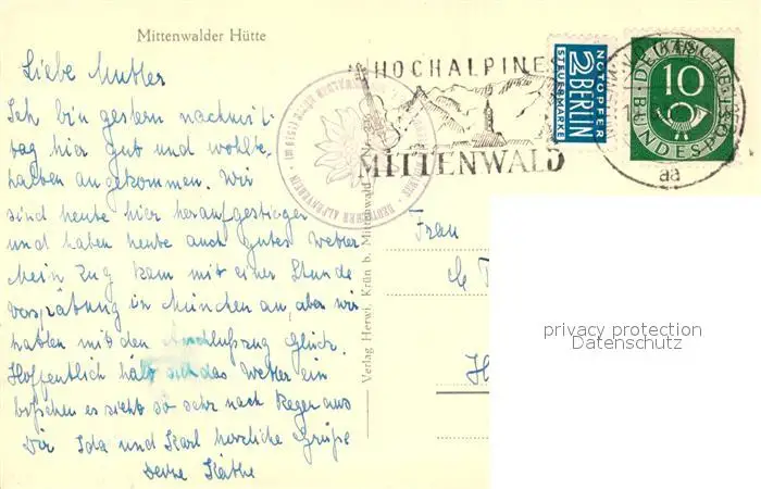 Mittenwald_Bayern Mittenwalder Huette Mittenwald Bayern postalisch gelaufen 1921-1965 Erhaltung siehe scans [WerneD78] WernPID7