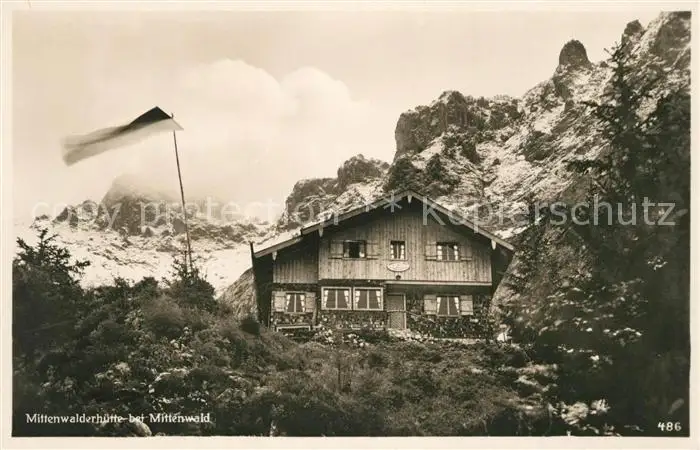 Mittenwald_Bayern Mittenwalderhuette Berghuette Alpen Mittenwald Bayern postalisch nicht gelaufen 1933 Erhaltung siehe scans [FriedD77] Frierer