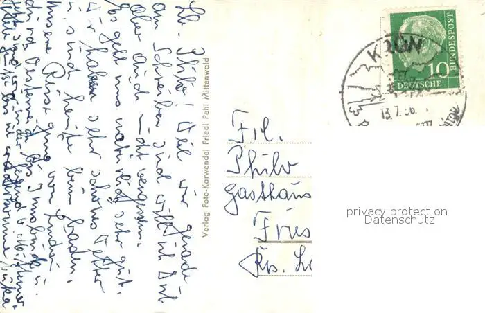 Mittenwald_Bayern Obermarkt Fassadenmalerei Kirche Mittenwald Bayern postalisch gelaufen 1956 Erhaltung siehe scans [FriedD77] Frierer