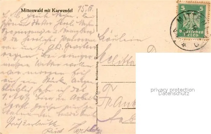 Mittenwald_Bayern Panorama mit Karwendelgebirge Mittenwald Bayern postalisch gelaufen 1924 Erhaltung siehe scans [FriedD77] Frierer