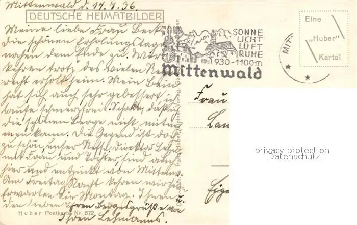 Mittenwald_Bayern Pfarrkirche mit Goethehaus Mittenwald Bayern postalisch gelaufen 1936 Erhaltung siehe scans [WerneD78] WernPID7
