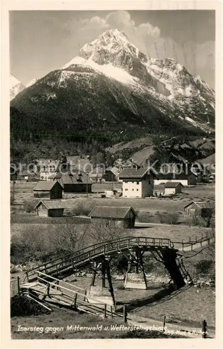 AK / Ansichtskarte Mittenwald_Bayern mit Isarsteg und Wetterstein Mittenwald Bayern