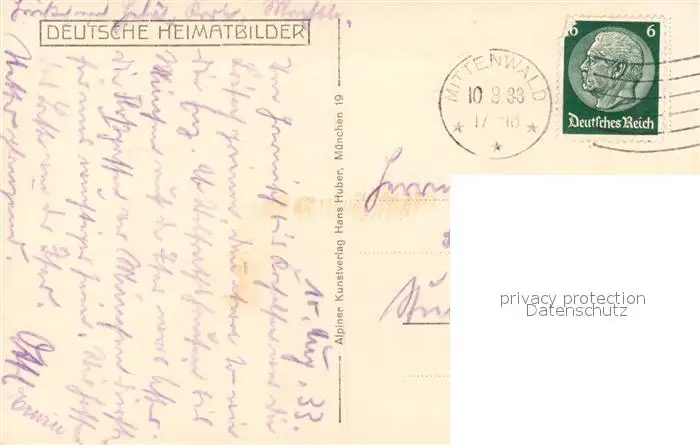 Mittenwald_Bayern mit Isarsteg und Wetterstein Mittenwald Bayern postalisch gelaufen 1933 Erhaltung siehe scans [WerneD78] WernPID7