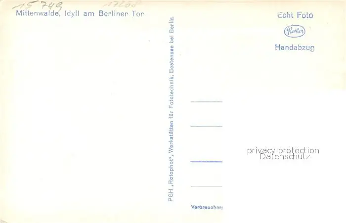 Mittenwalde_Mark Idyll am Berliner Tor Handabzug Mittenwalde Mark postalisch nicht gelaufen 1961 Erhaltung siehe scans [FriedD77] Frierer