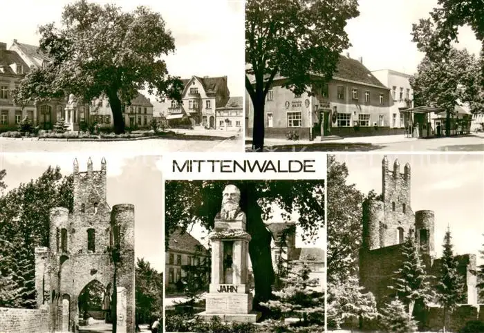 AK / Ansichtskarte Mittenwalde_Mark Orts und Teilansichten Torturm Jahn Denkmal Mittenwalde Mark