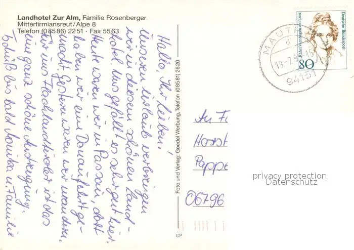 Mitterfirmiansreut Landhotel Zur Alm Mitterfirmiansreut postalisch gelaufen nach 1965 Erhaltung siehe scans [WerneD78] WernPID7