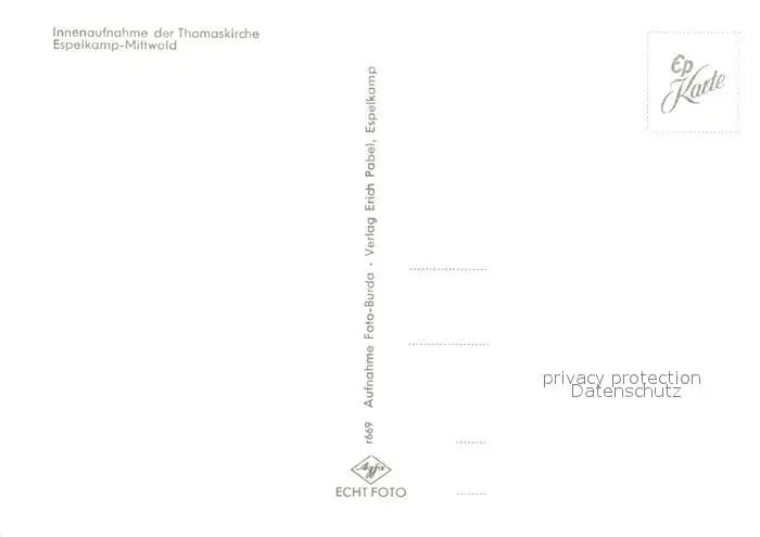 Mittwald_Espelkamp Innenaufnahme der Thomaskirche Mittwald Espelkamp postalisch nicht gelaufen nach 1965 Erhaltung siehe scans [FriedD77] Frierer