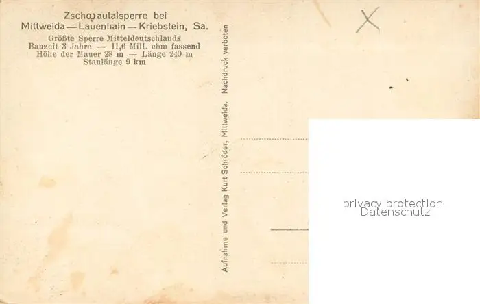 Mittweida Lauenhain Kriebstein Zschopautalsperre Mittweida postalisch nicht gelaufen 1921-1965 Erhaltung siehe scans [WerneD78] WernPID7
