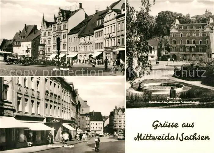 AK / Ansichtskarte Mittweida Markt Rochlitzer Strasse Platz der Deutsch Sowjetischen Freundschaft Mittweida