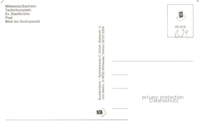 Mittweida Technikumplatz Stadtkirche Post Panorama Zschopautal Wappen Mittweida postalisch nicht gelaufen nach 1965 Erhaltung siehe scans [FriedD77] Frierer