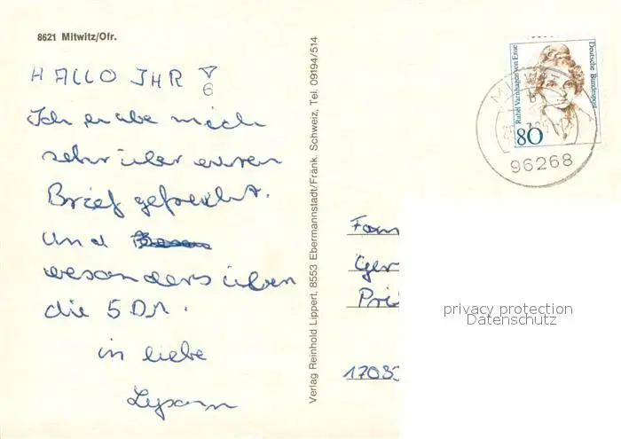 Mitwitz Schloss Park Hauptstrasse Kirche Mitwitz postalisch gelaufen 1985 Erhaltung siehe scans [FriedD77] Frierer