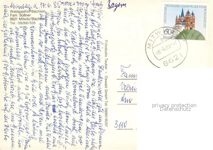 Mitwitz Waldgasthof Baechlein Gaststube Freisitz Mitwitz postalisch gelaufen 1986 Erhaltung siehe scans [WerneD78] WernPID7