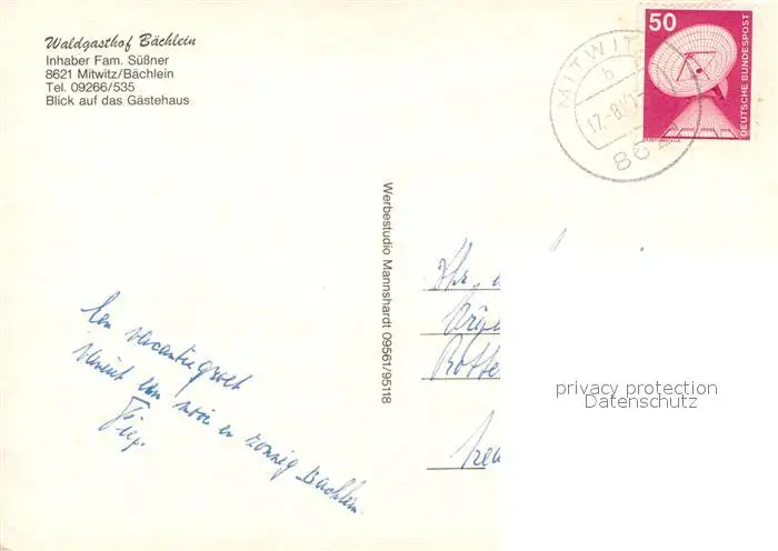 Mitwitz Waldgasthof Baechlein Mitwitz postalisch gelaufen 1980 Erhaltung siehe scans [WerneD78] WernPID7