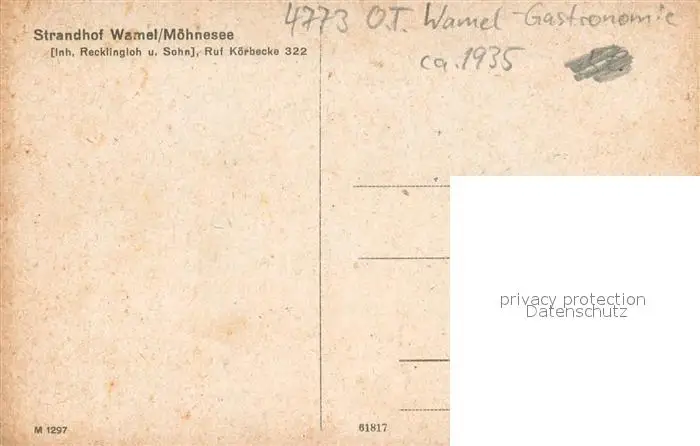 Moehnesee Strandhof Wamel Moehnesee postalisch nicht gelaufen 1935 Erhaltung siehe scans [WerneD78] WernPID7