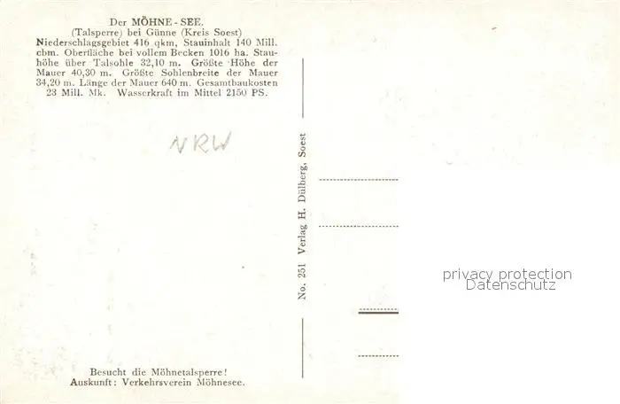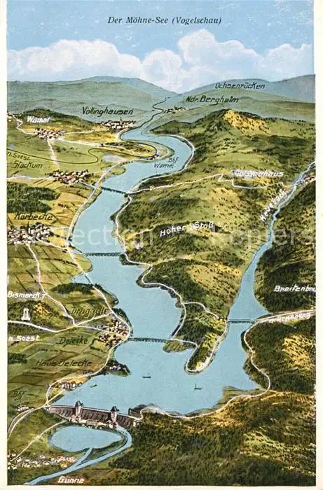 Moehnesee mit Talsperre Panoramakarte Moehnesee postalisch nicht gelaufen 1921-1965 Erhaltung siehe scans [WerneD78] WernPID7