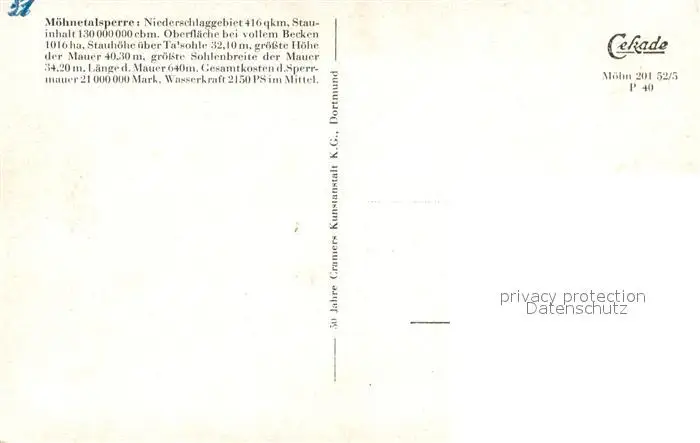 Moehnetalsperre Fliegeraufnahme Moehnetalsperre postalisch nicht gelaufen 1921-1965 Erhaltung siehe scans [WerneD78] WernPID7