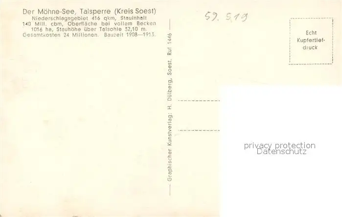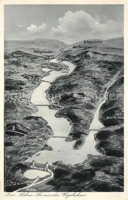 Moehnetalsperre Moehnesee aus der Vogelschau Moehnetalsperre postalisch nicht gelaufen 1921-1965 Erhaltung siehe scans [FriedD77] Frierer